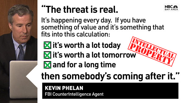 Demers said ninety% of alternate secret theft from the united states will also be traced to China, and no company, no rely how significant, is immune from the chance. NBC Bay enviornment discovered thatthe brunt of China's efforts seems to be focused on the crown jewels of american know-how – researched, developed, and closely guarded right here in Silicon Valley.